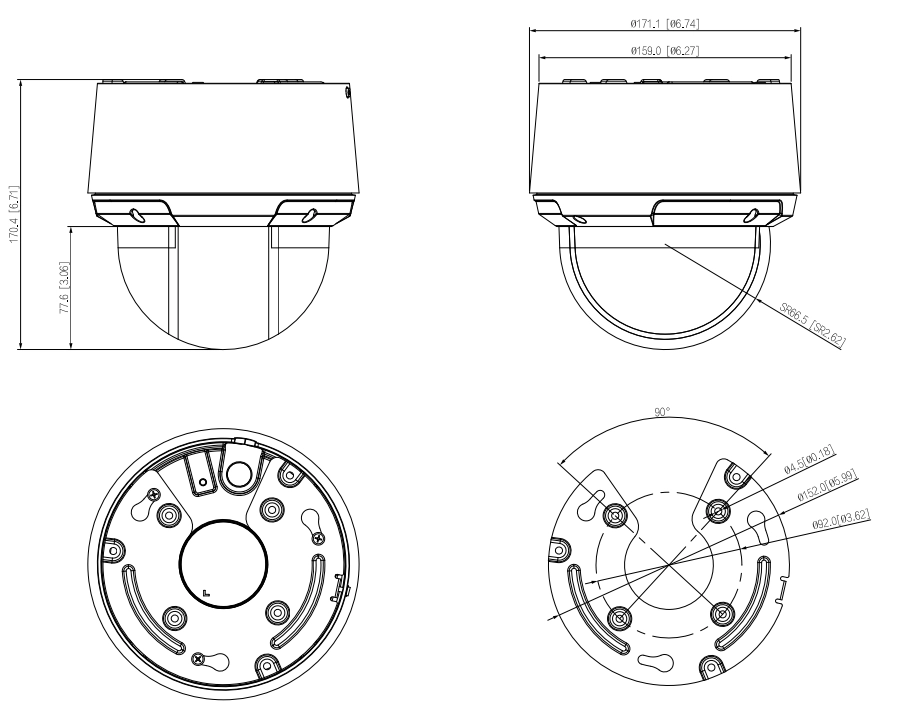 | Zakres Pan/Tilt | Pan: 0° do 360° (bez końca) / Tilt: –5° do +90° (Auto flip 180°) |