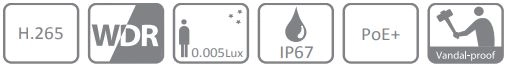 | Zdarzenia Alarmowe | Detekcja Ruchu/Wandalizmu; detekcja audio; Utrata sieci; konflikt IP; błąd/brak karty pamięci; wyjątek zasilania |