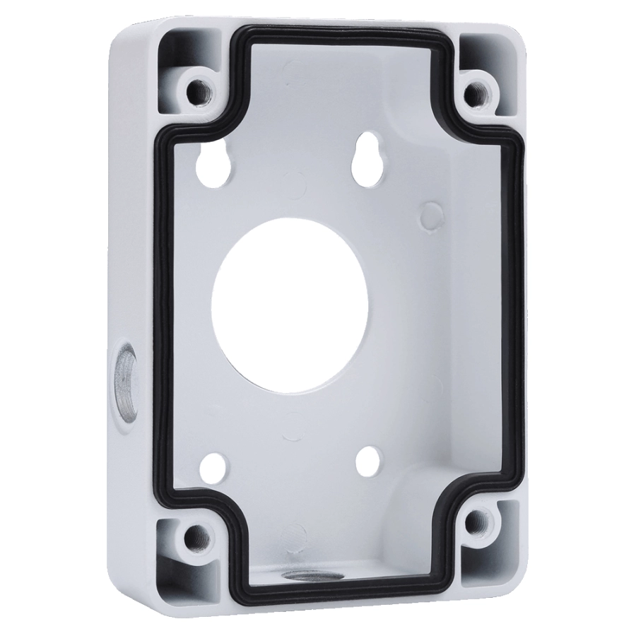 Puszka została zaprojektowana z myślą o pełnej ochronie połączeń kablowych przed wilgocią oraz zanieczyszczeniami. Konstrukcja oferuje klasę szczelności IP66. Gwarantuje to niezawodność systemu nawet w trudnych warunkach środowiskowych. Wnętrze puszki zapewnia wystarczającą przestrzeń na ukrycie złączy wideo oraz wtyków zasilania. Chroni to elementy stykowe przed korozją. Model ten znacząco przyspiesza prace instalacyjne, eliminując potrzebę stosowania dodatkowych, zewnętrznych skrzynek przyłączeniowych.