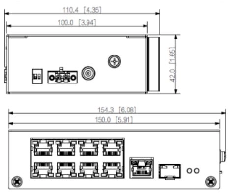 | Ilość i typ portów | 8× RJ45 PoE 100Mbps, 1× SFP 1000Mbps, 1x RJ45 1000Mbps |