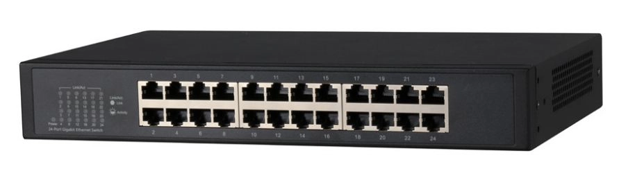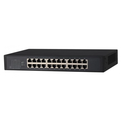 Niezarządzalny switch, 2 warstwowy, 24-portowy PFS3024-24GT firmy Dahua. Zaprojektowany dla zastosowania przy dużych strumieni danych wideo w sieciach monitoringu CCTV IP. Przystosowany do pracy ciągłej 24/7.