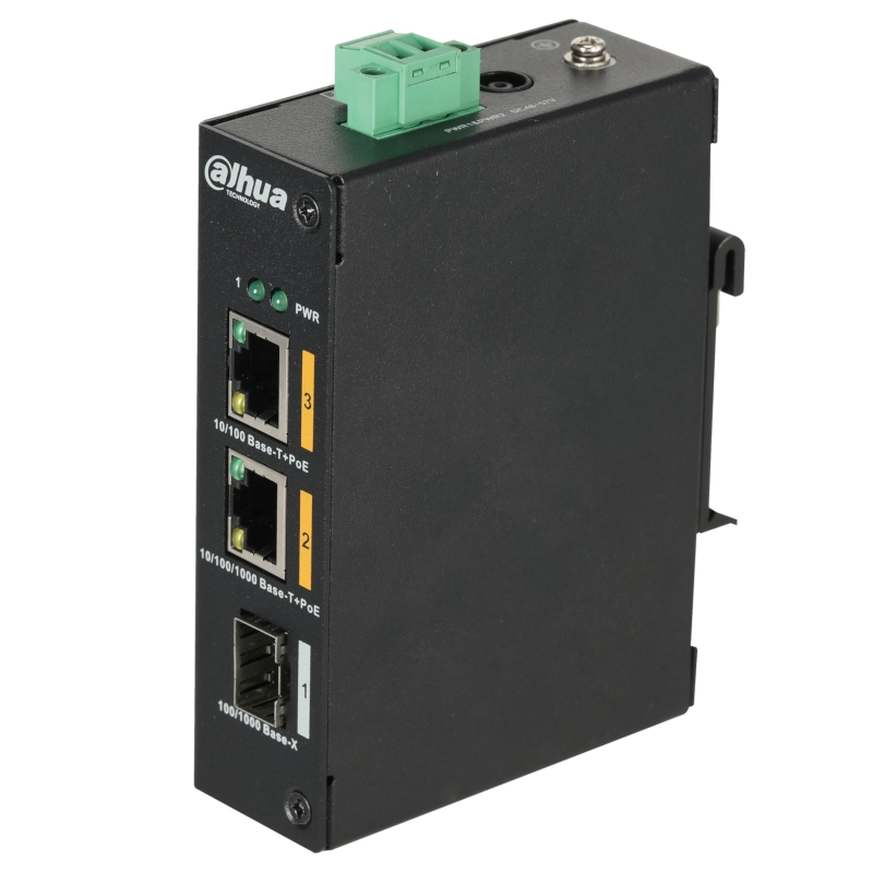 Posiada 3 porty: 1xRJ45 10/100M (PoE), 1xRJ45 10/100/1000M (PoE), 1xSFP 100/1000M (uplink). Urządzenie zapewnia płynną transmisję sieciową z prędkością 10/100/1000 Mbps. Urządzenie posiada samoadaptacyjny port światłowodowy SFP o prędkości 100/1000Mb/s.