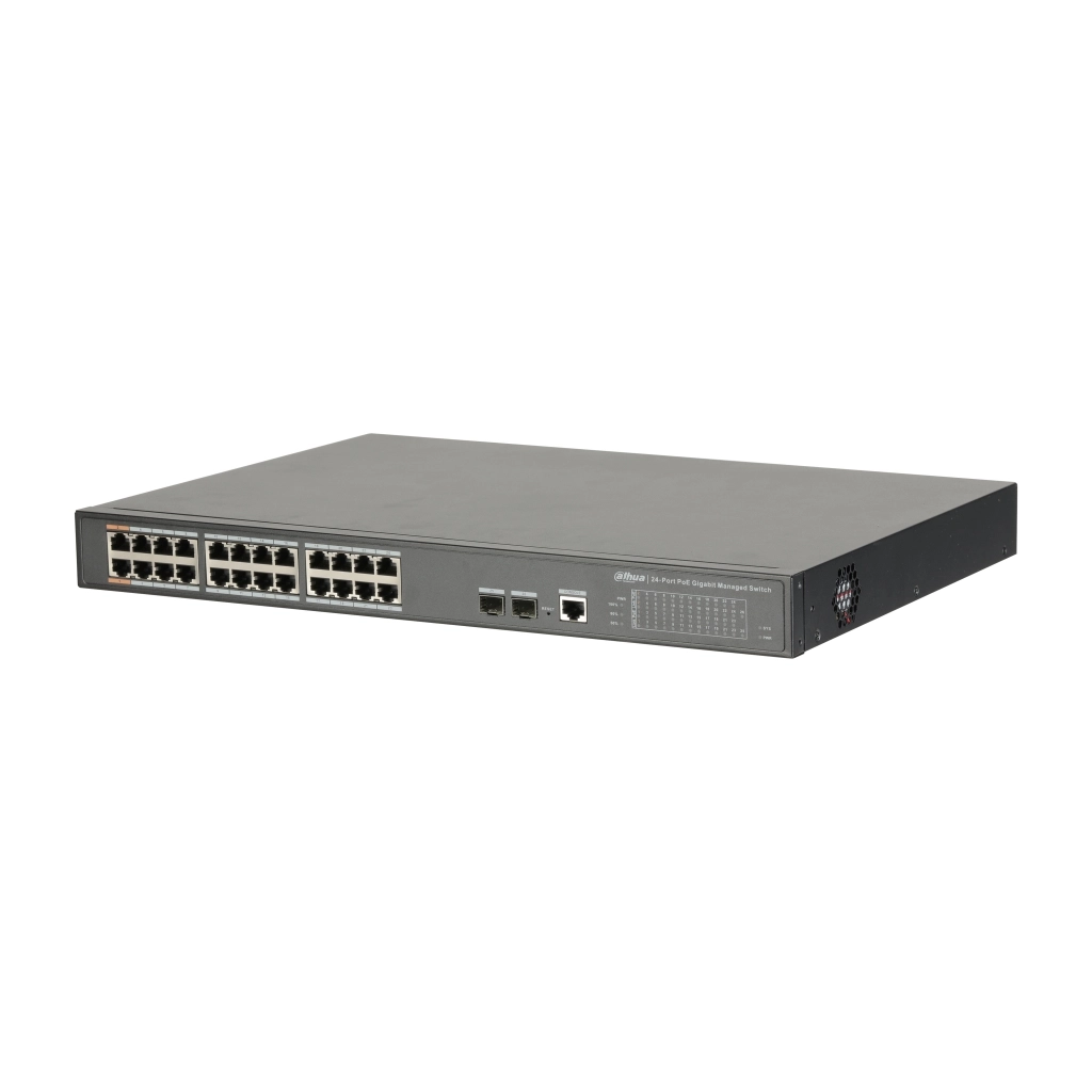 Dwuwarstwowy przełącznik zarządzalny PoE model PFS4226-24GT-360 firmy Dahua.