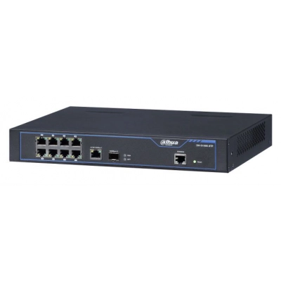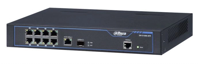Niezarządzalny switch S1000-8TP firmy Dahua posiada 10 portów: 1 x port SFP 100/1000 Base-X, 1 x RJ45 10/100/1000 Base-T, 8 x RJ45 10/100 Base-T (PoE). Urządzenie zapewnia płynną transmisję sieciową z prędkością 10/100/1000 Mbps. Urządzenie posiada samoadaptacyjny port światłowodowy SFP o prędkości 100/1000Mb/s.