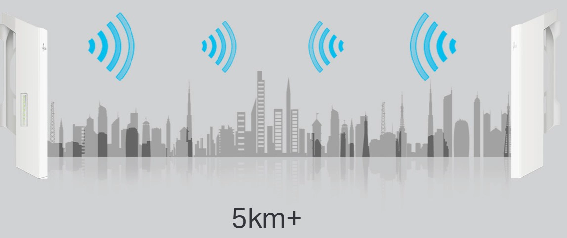 CPE210 został zaprojektowany do pracy na zewnątrz i umożliwia bezprzewodową transmisję danych na imponującą odległość ponad 5 km.
