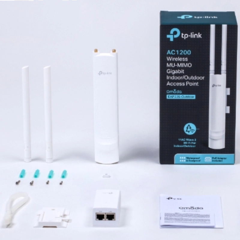 Zawartość opakowania | EAP225-Outdoor, Pasywny adapter PoE, Przewód zasilający, Zestaw montażowy, Instrukcja szybkiej instalacji, Wodoodporna wkładka gumowa, Wodoodporne anteny |