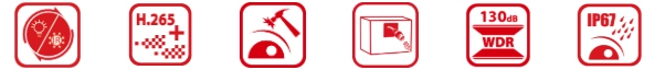- Funkcje: WDR 120dB, 3D DNR, ROI, AGC, HLC, BLC, EIS, Defog,