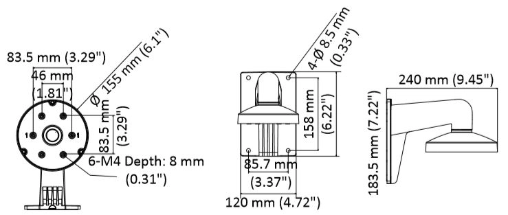 DS-1473ZJ-155 Hikvision wysięgnik ścienny do kamer kopułkowych