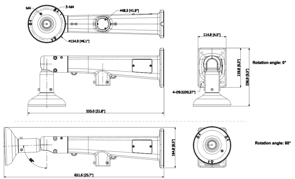 | Wymiary | Obrót 0°: 651.6mmx164.8mmx154.9mm Obrót 88°: 555mmx236.9mmx154.9mm |