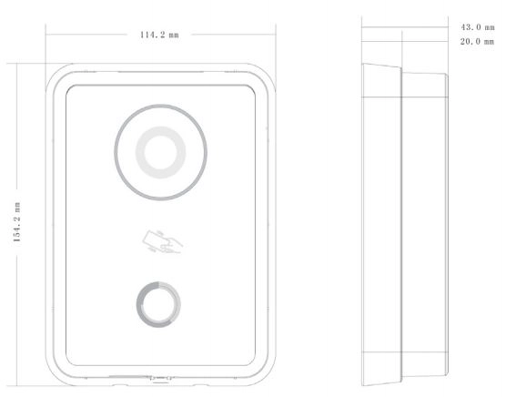 Urządzenie posiada kamerę 600TVL CMOS, jened przycisk wywołujący oraz czytnik kart. Wbudowany głośnik jak i mikrofon pozwalają na komunikację dwukierunkową. Schludna czarna obudowae znakomicie pasuje do różnego rodzaju zabudowań.