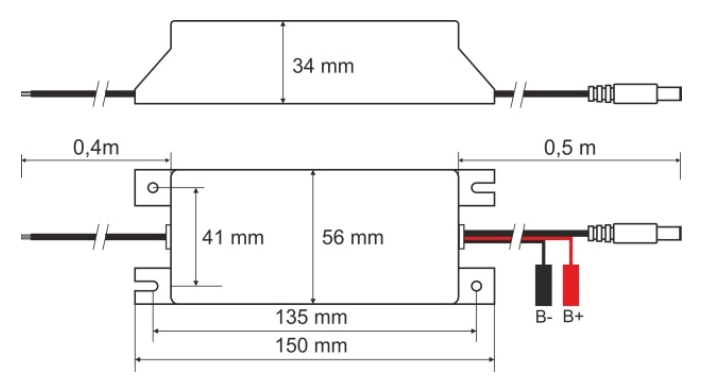 Długość kabla DC | 0,5 m + wtyk DC 5,5/2,1 żeński |