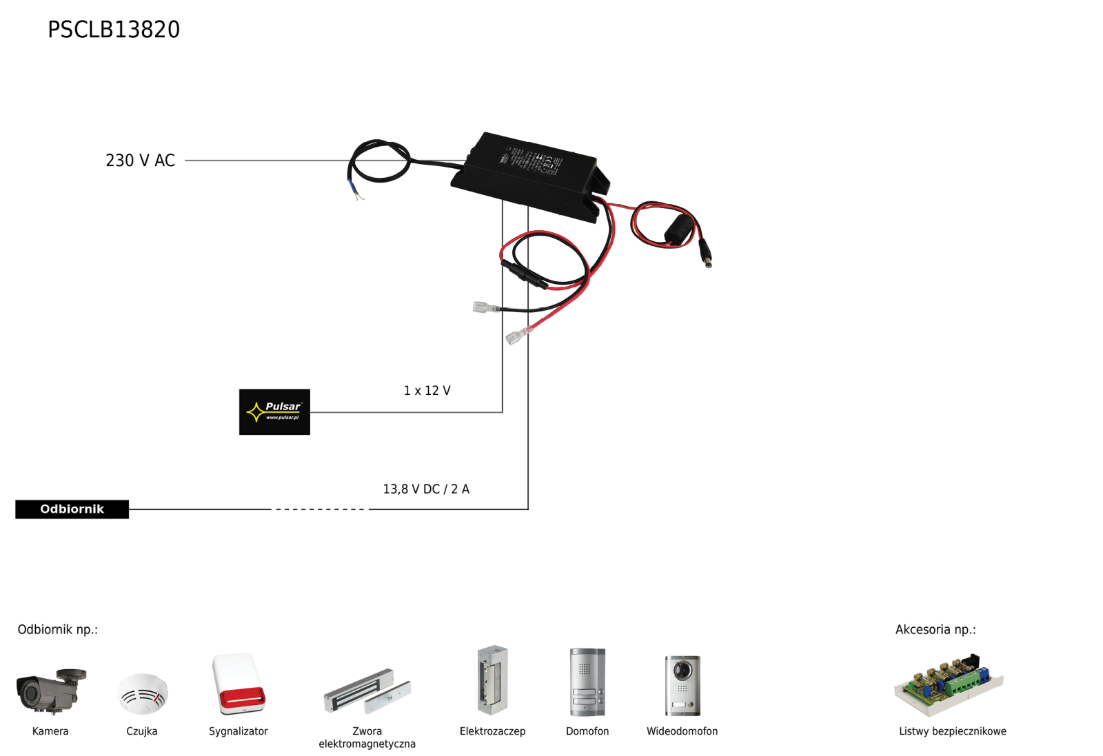 Zasilacz buforowy impulsowy model PSCLB13820 13,8V/2A (32W) o klasie szczelności IP 67