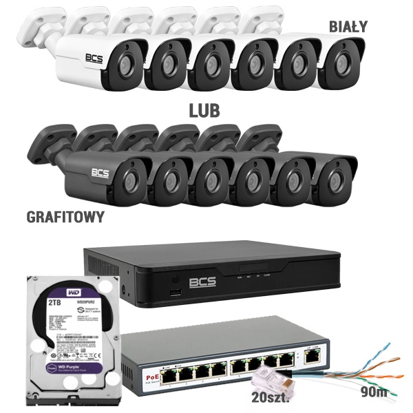 Zestaw MBS-BCS13 do zewnętrznego monitoringu IP z mikrofonem BCS Point 2Mpx rejestrator 8 kanałowy 6 kamer