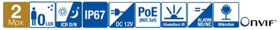 - Funkcje: AGC, AWB, HLC, BLC, D-WDR, 3D DNR, ROI, Defog,
