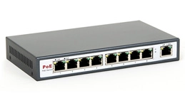 Przełącznik sieciowy posiada 8 portów PoE (IEE802.3af) RJ-45 10/100Mbps oraz 1 port Uplink RJ-45 10/100Mbps. Umożliwia przesył danych oraz zasilanie wykorzystując jeden kabel sieciowy.